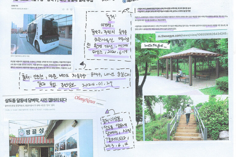 청소년 마을기록가 리빙랩에 참여한 상도중학교 학생들의 5주차 활동 결과물입니다.